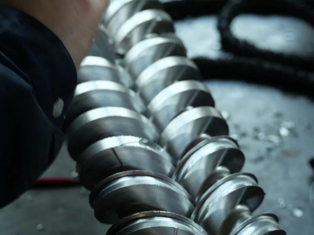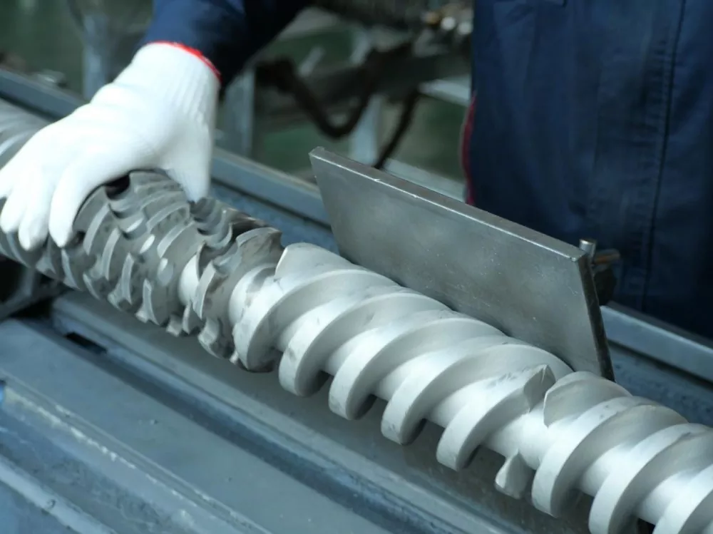 د موادو انتخاب هم مهم دی. زموږ پیچونه د لوړ کیفیت 38CrMoALA نایټریډ مصر فولاد څخه جوړ شوي دي. دا د اوه ورځو قند کولو او نایټریډ درملنې څخه تیریږي چې په پایله کې د 0.50-0.70mm ضخامت نایټریډ طبقه او د HV950-1050 سطحي سختۍ رامینځته کیږي. دا مادي ملکیتونه حتی د 200 ° C شاوخوا تودوخې کې د پوښاک غوره مقاومت تضمینوي ، د دودیزو محصولاتو په پرتله د سکرو خدمت ژوند لږترلږه یو پر پنځمه غزوي. دا په مړو کونجونو کې د موادو د جوړیدو مخه نیسي ځکه چې د اوږدې مودې کارولو په وخت کې د سطحې پوښل کیږي.